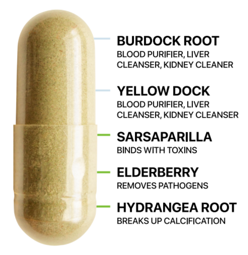 Sarsaparilla binds toxins for easy removal, while elderberry targets viruses and pathogens naturally.